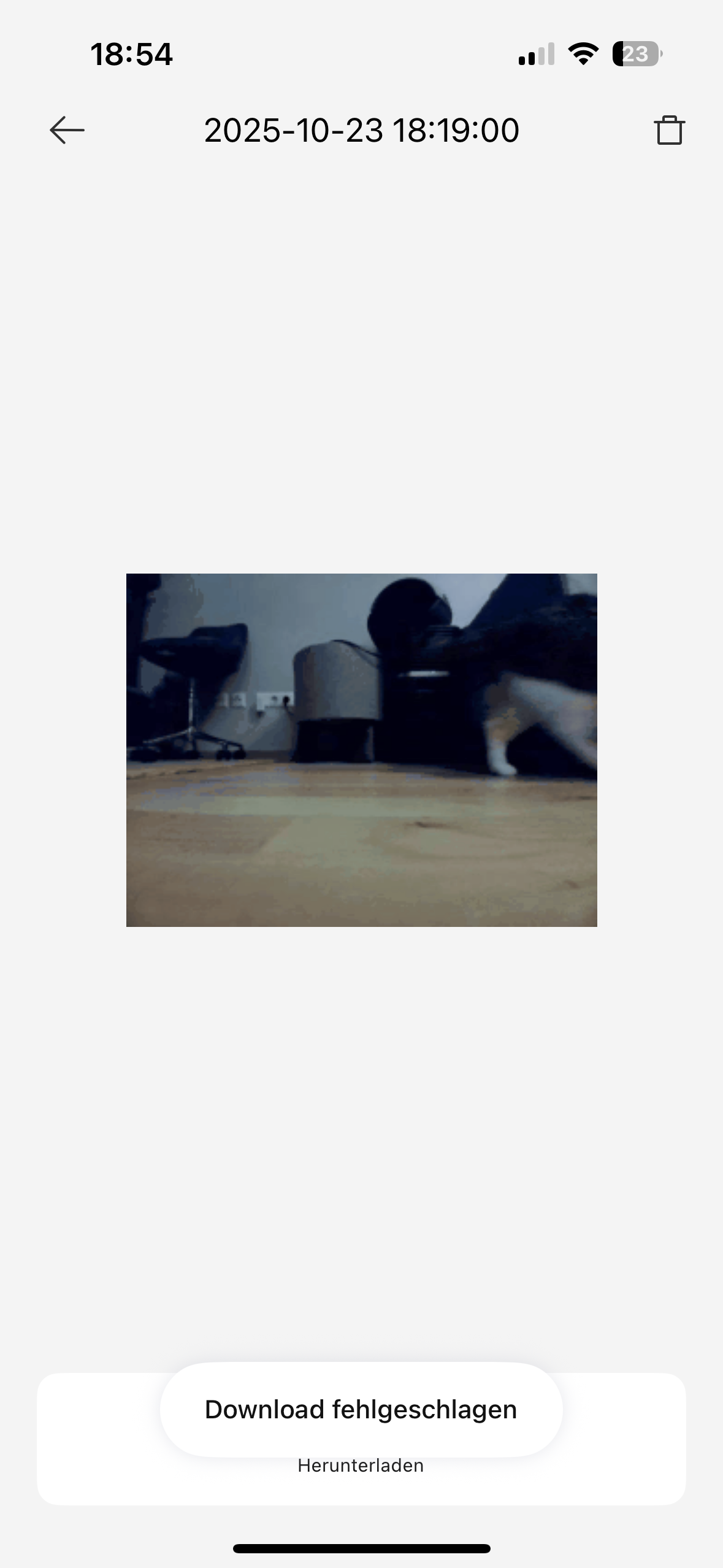 Der Roboter macht Videos , die sind aber nur in der App sichtbar. Ein Herunterladen funktioniert nicht - ich bekomme immer eine Fehlermeldung