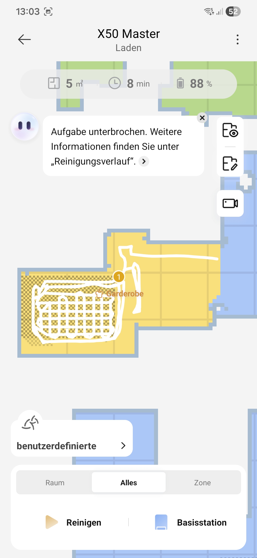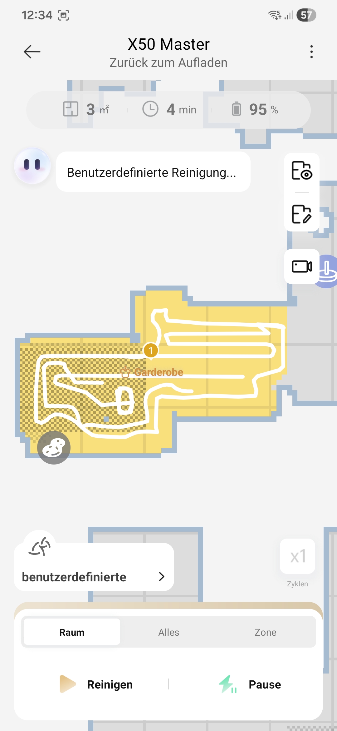 Ja, dass geht. Wenn man mehrere Räume zur Reinigung ausgewählt hat, saugt er dann erst in allen Räumen die Teppiche. Ich möchte aber, dass er Raum für Raum fertig macht und dabei die Teppiche jeweils intensiv reinigt. Wie haben lauten und können die Türen nicht so lange offen stehen lassen