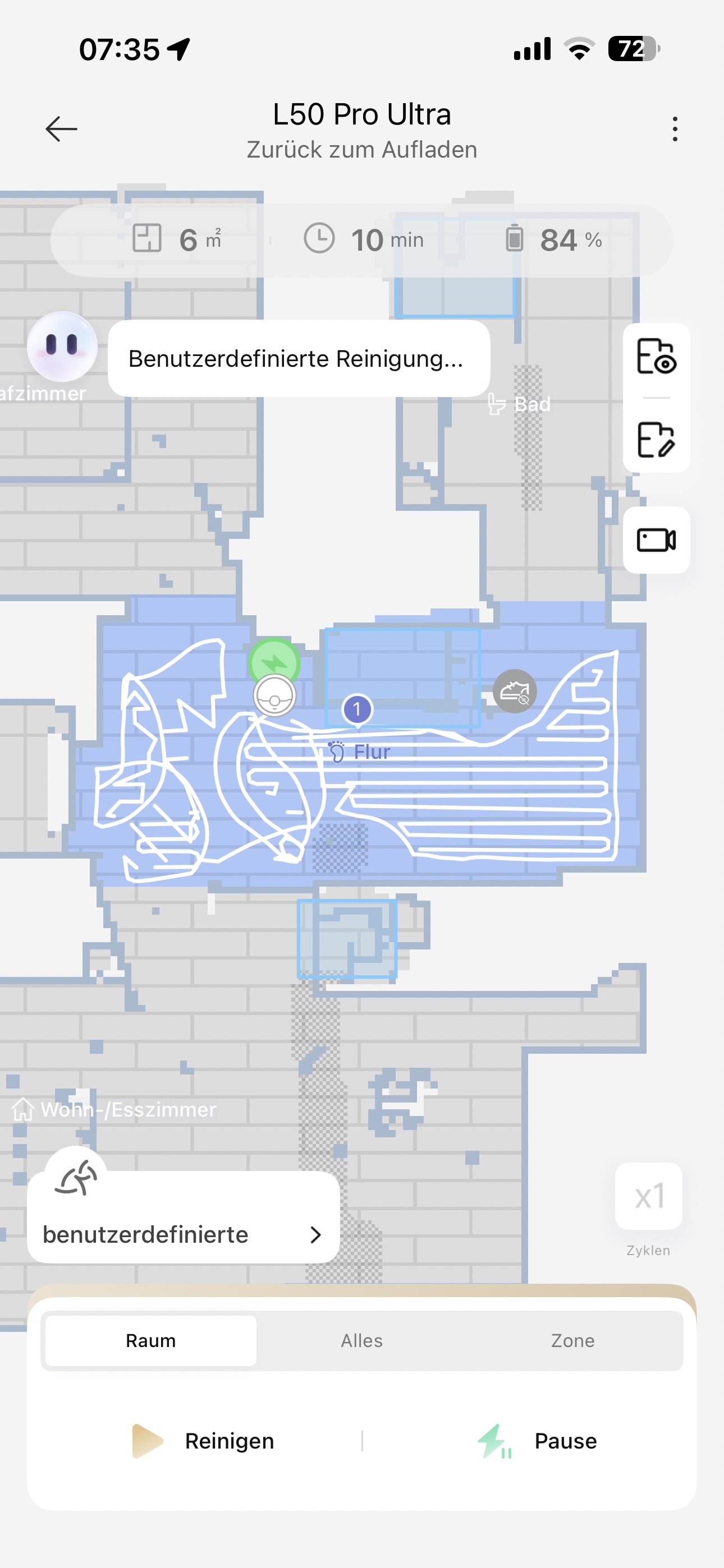 Mittlerweile hält dieses chaotische Putzverhalten (wie die Räume abgefahren werden) immer mehr und mehr Einzug, auch in den anderen Räumen!