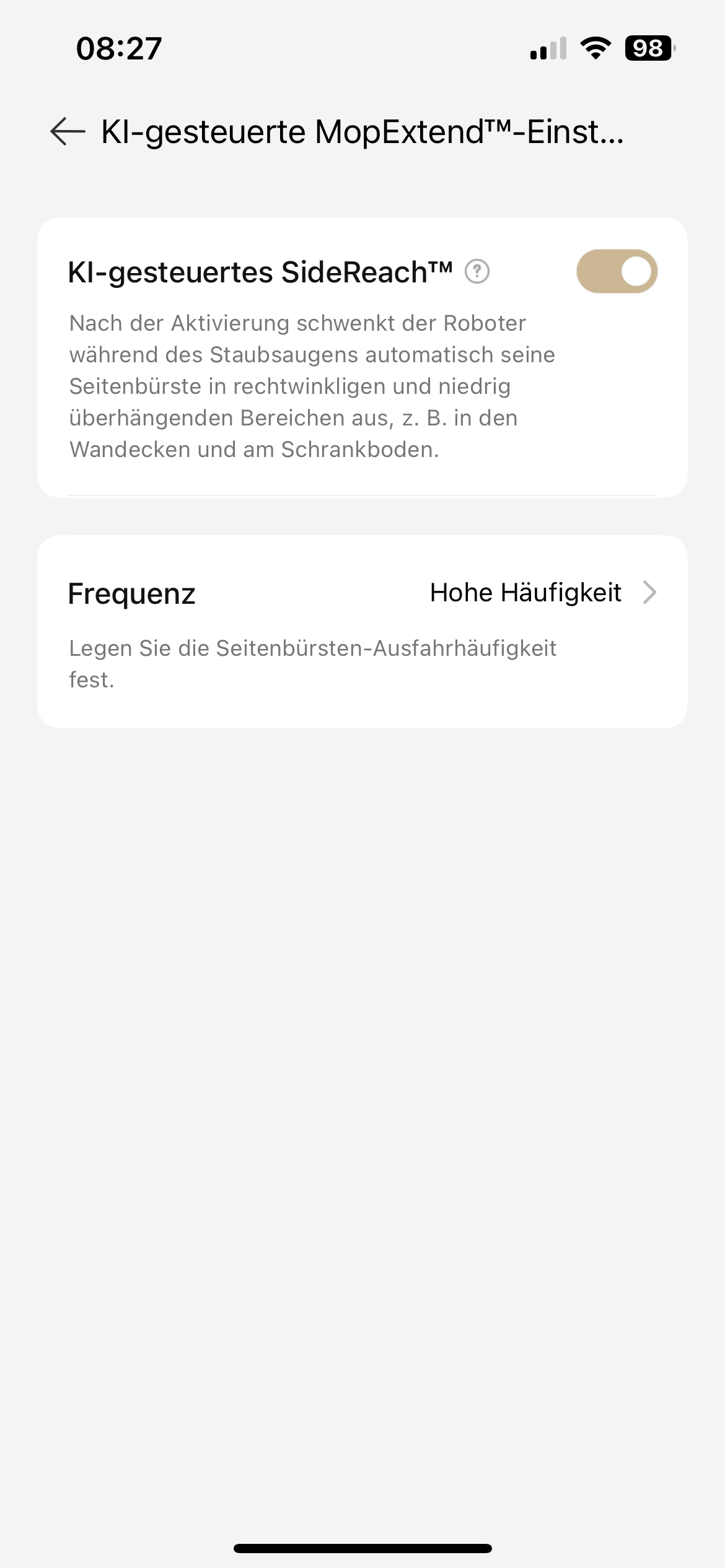 auch unser D20 Pro Plus fährt die Seitenbürste nur nach einem Neustart für einen Tag aus. Danach ist der alte Status wieder ohne Seitenbürste hinterlegt.