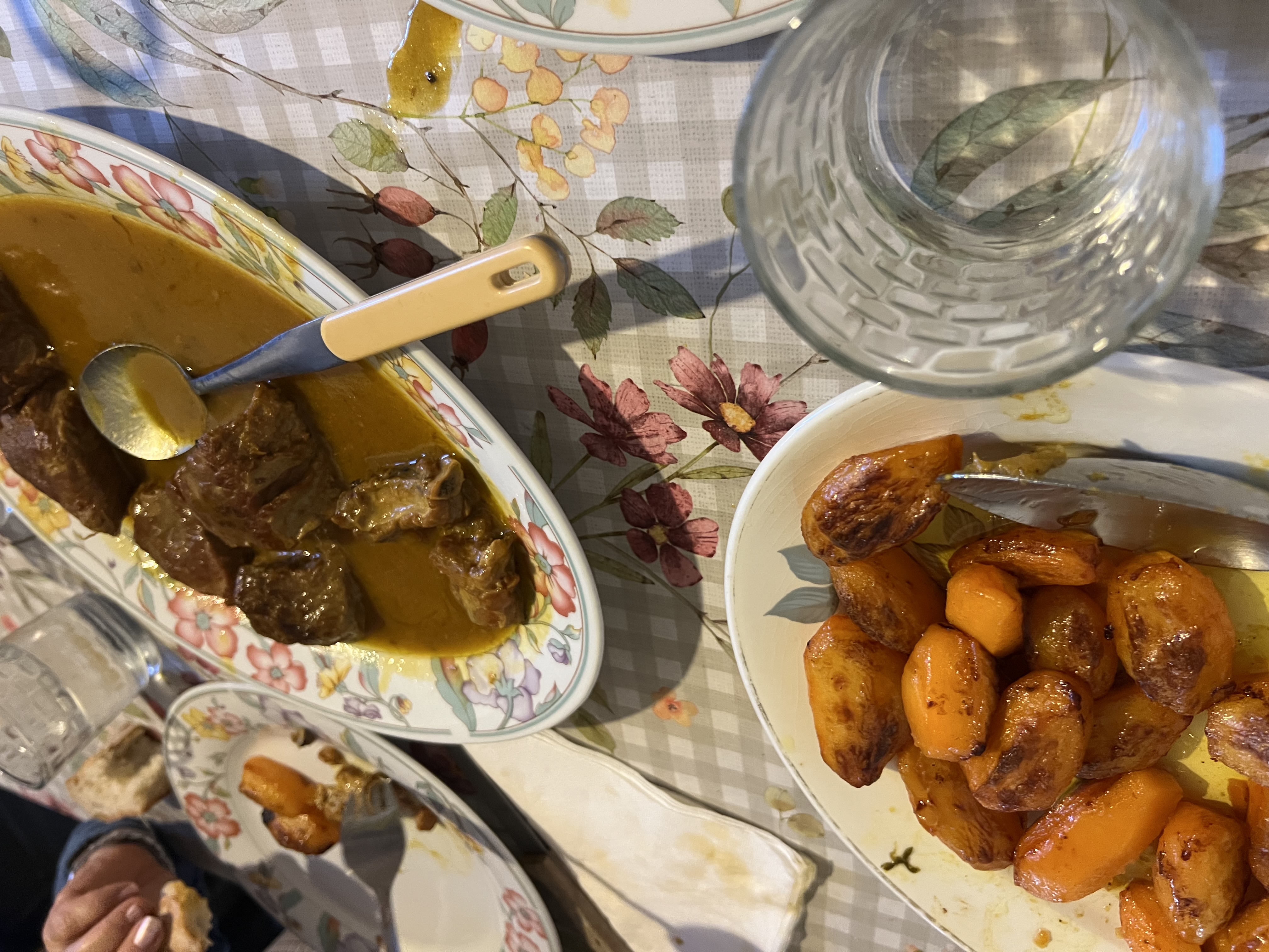 Zum Schluss, etwas Fleisch und Kartoffeln, im Ofen gebraten.