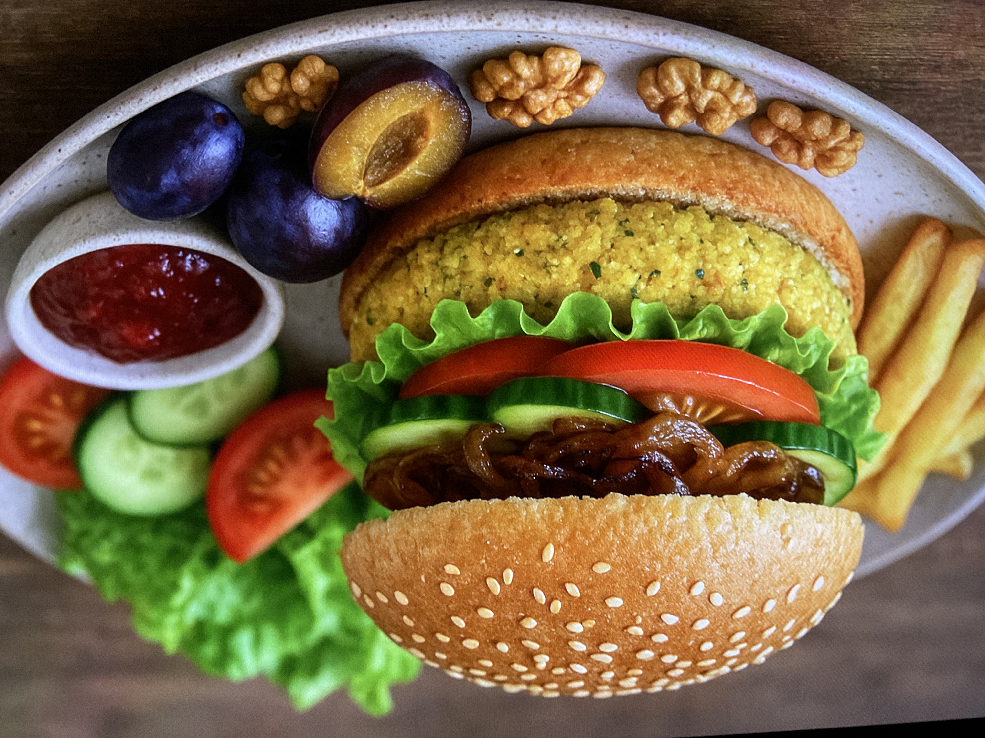 Die Zwiebel hacken und in einem Topf mit etwas Bratöl andünsten, den Knoblauch pressen und dazugeben. Die Gemüsebrühe aufkochen, und den Couscous und die Kräuter einrühren. Den Topf von der Platte nehmen, mit einem Deckel verschließen und ca. zehn Minuten quellen lassen. Die Masse etwas abkühlen lassen, die Eier hineinrühren, mit Salz und Pfeffer würzen. Mit nassen Händen flache Taler formen und von beiden Seiten goldbraun und knusprig anbraten.