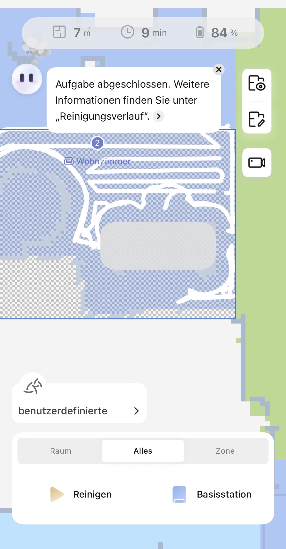 Zusätzlich können Sie versuchen, die Funktion "Bereichsauswahl" zu nutzen, um dem Roboter bestimmte Reinigungszonen zuzuweisen.