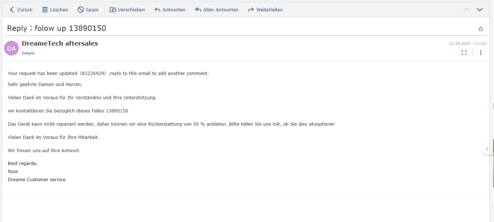 【A2】Enttäuschend! Sofort angerufen für eine Retoure!