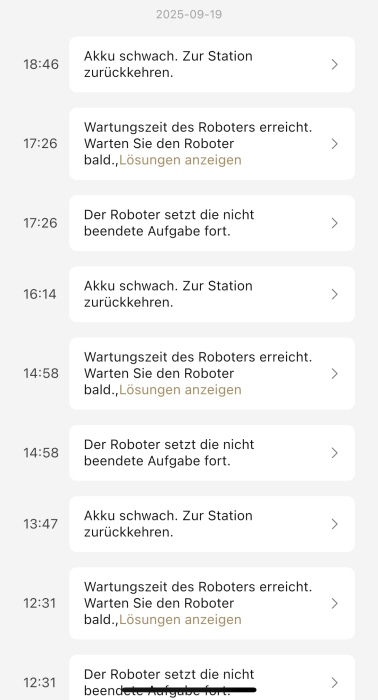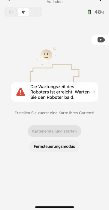 【A2】Wenn man einen Wartungshinweis bekommt, dann läd er nicht die Karten zum mähen und die Anzeigen für Messer, Bürste und säubern werden alle mit 100% angezeigt