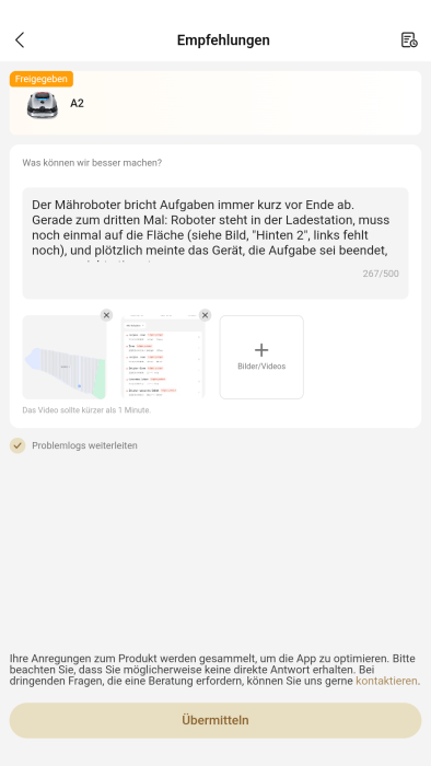 【A2】Frage Nr. 4 von mir als Dreame-Neuling: Mein A2 Mähroboter meint bei geplanten Aufgaben jedes Mal kurz vor Schluss, aus heiterem Himmel, dass er mit der Aufgabe fertig sei. Immer dasselbe Spiel: Er...Alles anzeigen
