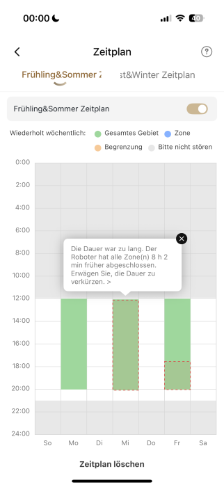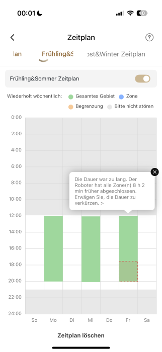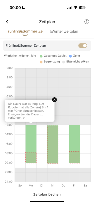【A1 Pro】1. Der Zeitplan enthält immer noch den schon früher bemängelten Wochenplan, der kein Mähen an jedem 2. Tag ermöglicht. 2. Meine Zeitvorgaben sind so gewählt, dass der Mäher auch im ungünstige...Alles anzeigen