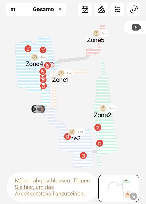【A2】Hallo zusammen, ich betreibe meinen Mäher aktuell in vier Zonen, damit ich gezielt an verschiedenen Wochentagen unterschiedliche Teilflächen mähen kann (siehe Bild). Dabei entstehen an den innere...Alles anzeigen