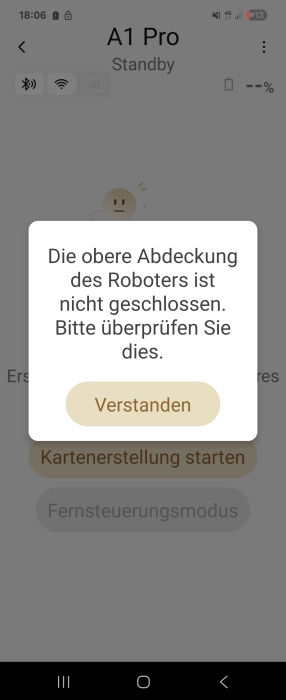 Hallo, bevor wir überhaubt eine Karte etstellen können, meldet der Roboter, dass die obere Abdeckung nicht geschlossen sei.... ist sie aber. Jenand eine Idee?