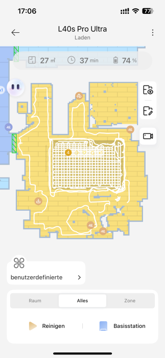 Kann jemand erklären, warum mein L40s seit kurzem einen Raum sporadisch nur am Rand reinigt bzw. den Teppich in der Mitte? Screenshot ist von der letzten Fahrt heute im Modus Staubsaugen