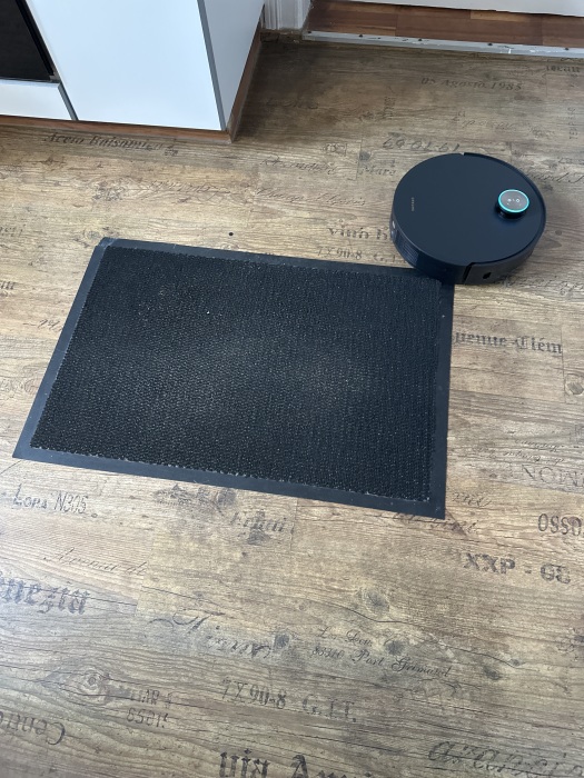 Das Gerät hat leider Angst vor einem schwarzen Teppich und fährt da nicht drauf. Ich weiß nicht warum aber das scheint irgendwie eine Grenze zu sein.