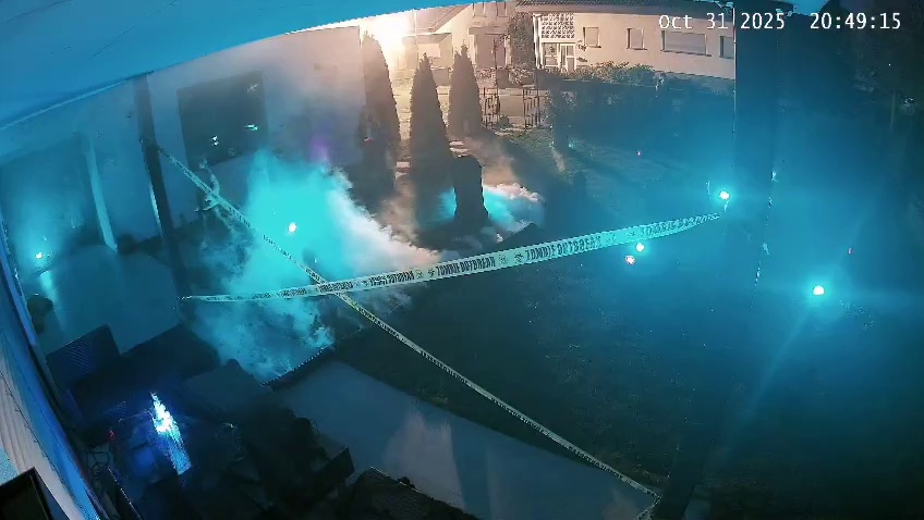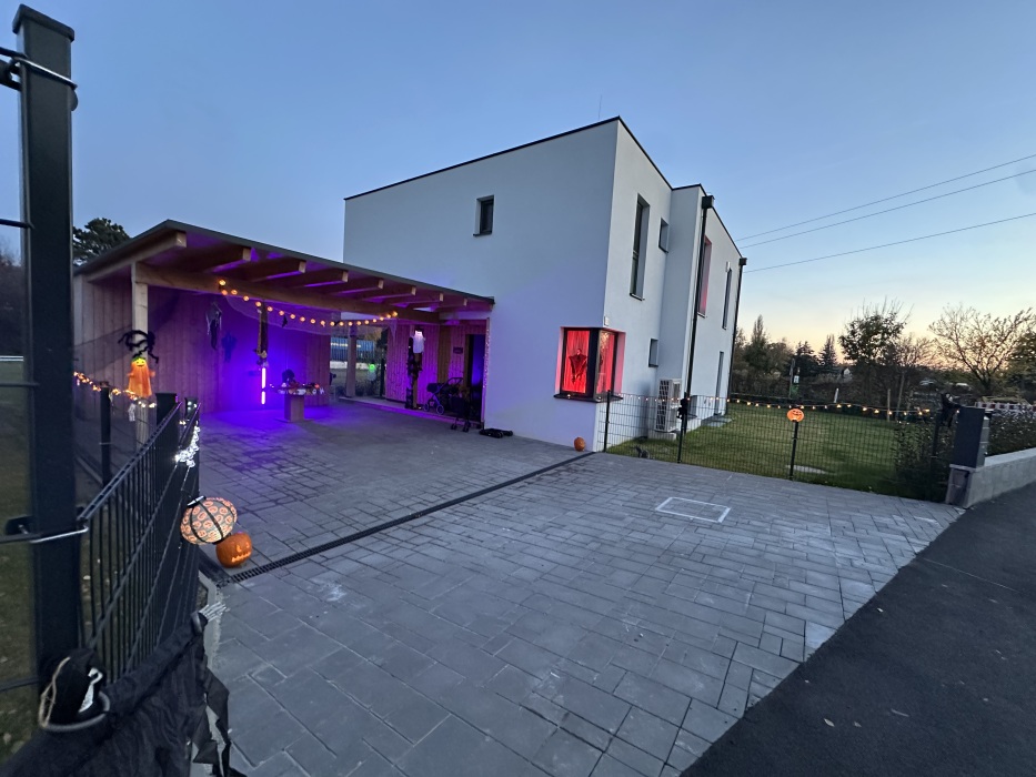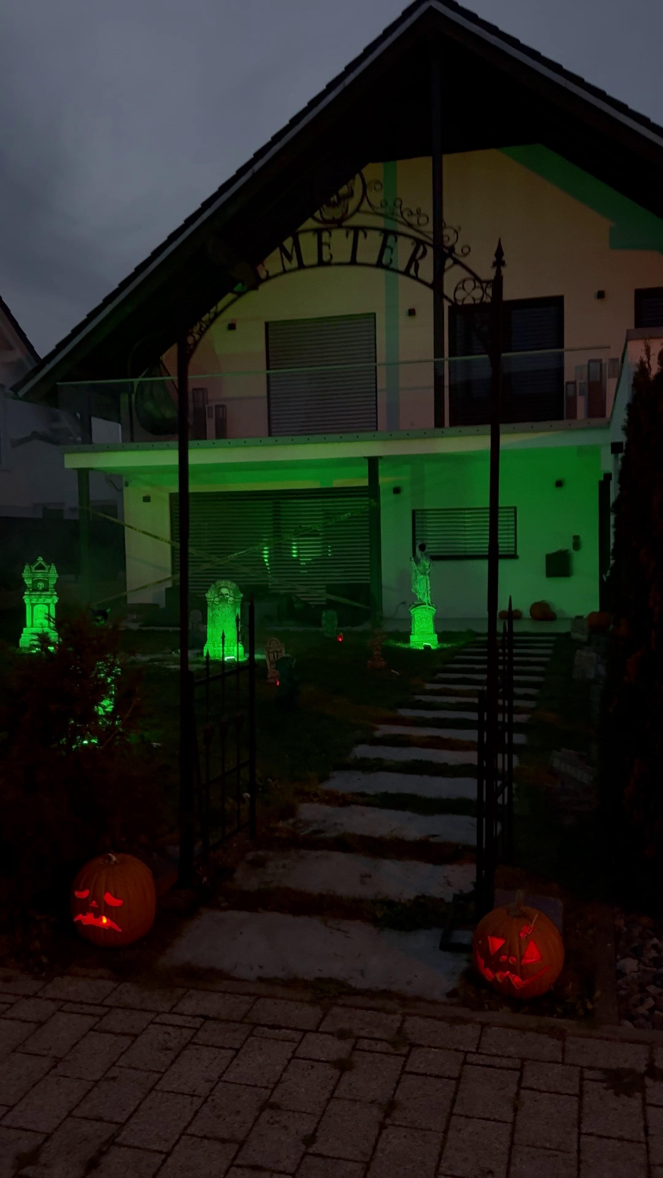 【DreameLight】Teil unserer Halloween Deko mit beleuchteten Kürbissen und einem heulenden Werwolf.