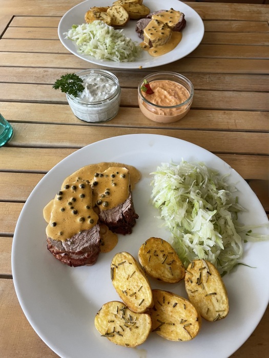 【HolidayRecipes】In der zauberhaften Wärme der Adventszeit entführt dieses elegante Steak mit würziger Pfeffersauce, frischem Krautsalat und goldbraunen Rosmarinkartoffeln zu einem unvergesslichen Geschmackserlebni...Alles anzeigen