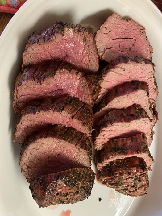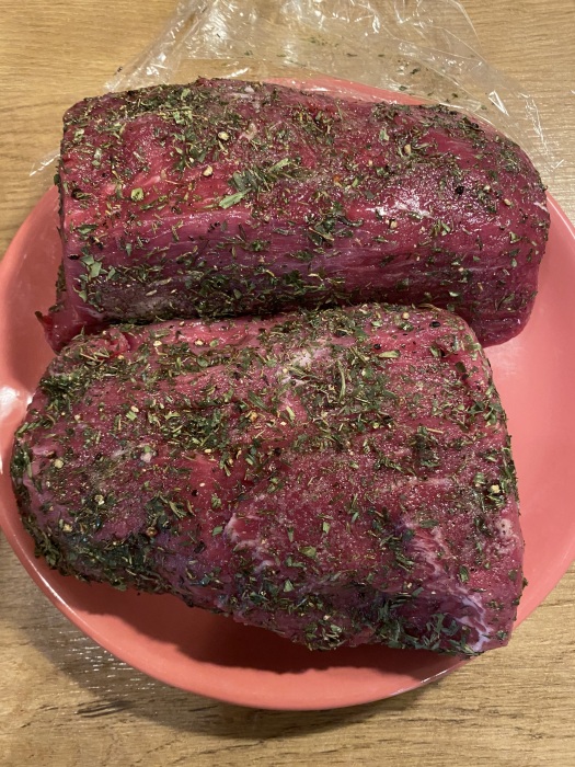 【HolidayRecipes】Etwa 1,5 kg Rinderfilet mit einer Mischung aus Estragon (1,5 EL), Salz (3 TL), Pfeffer (3 TL), Thymian (2 TL) und Salbei (1 TL) einreiben. Vorher mit Olivenöl bestreichen und mit Küchengarn zu einem...Alles anzeigen