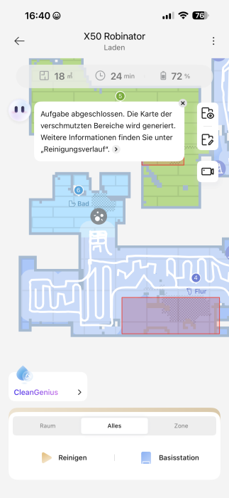 Der Roboter Dreame L40S Ultra fährt mitten in der Nacht ohne Auftrag einfach herum. In der früh steht er irgendwo ohne Akku, da er nicht mehr selbstständig zur Ladestation findet obwohl diese 20cm ...Alles anzeigen