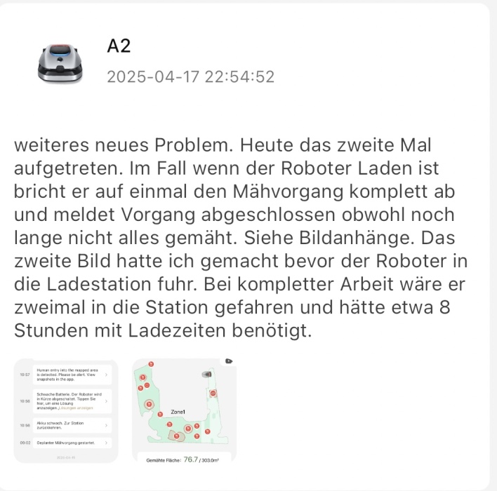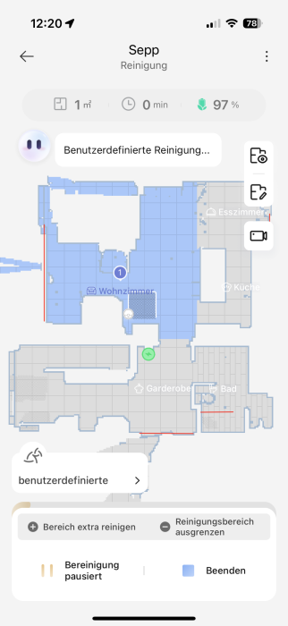 Hallo, Wenn ich meinen X40 im Benutzer def. Modus laufen lasse, nur saugen, dann saugt er nur 1 qm. Siehe Bild.