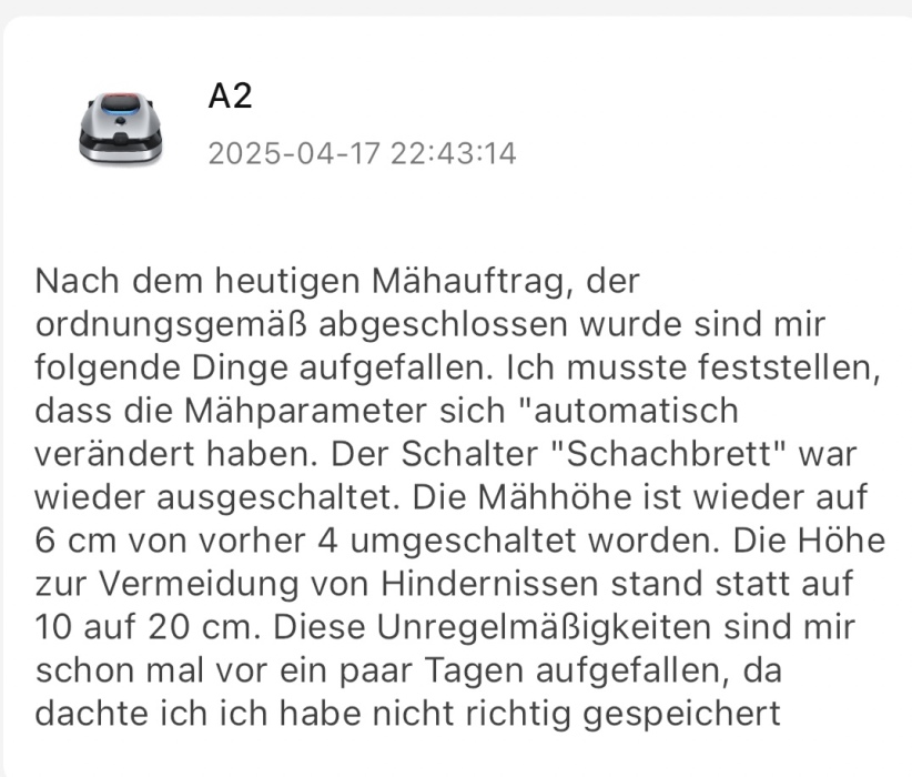 【X40 Ultra Complete】Hallo, ich habe verschiedene geplante Reinigungen angelegt. Das funktioniert gut, aber ich würde gerne unterschiedliche Namen vergeben, z.b. "Saugen von Zimmer X" , oder "Wischen aller Räume" etc. H...Alles anzeigen