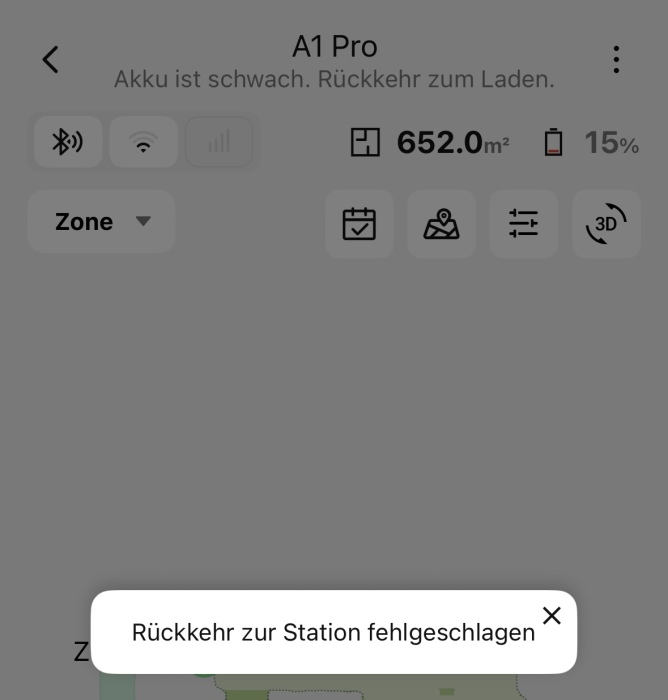 【A1 Pro】Hallo, Ich habe seit ein paar Tagen den Dreame A1 Pro bei mir im Garten am laufen. Seit heute kehrt der Roboter nicht zur Station zurück. Ich hatte eingestellt dass er mit 15% zurück kehrt, was auc...Alles anzeigen