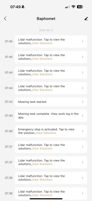 【A2】Unfortunately, after only 11 days, my mower no longer works. "LiDAR malfunction" and it won't even turn in circles when it claims it's repositioning. Several restarts, cleaning the LiDAR (and camera)!...Alles anzeigen