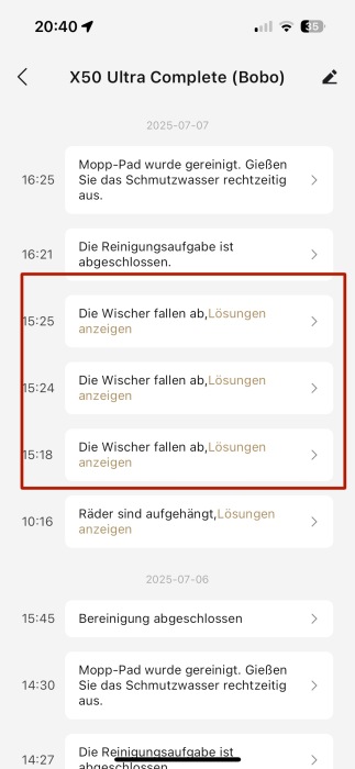【X50 Ultra Complete】Hallo zusammen, wir nutzen den X50 Ultra Complete nun seit etwa 4–5 Wochen und sind grundsätzlich sehr zufrieden mit dem Gerät. Allerdings haben wir ein wiederkehrendes Problem: Die Wischer falle...Alles anzeigen