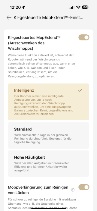 Hallo, Ich habe eine Frage bezüglich der Wischmops vom X 30 Ultra.Ich habe das MopExtend aktiviert aber der Roboter fährt den Seitenmop beim wischen nicht aus. Anbei ein Bild von der Einstellung ...Alles anzeigen