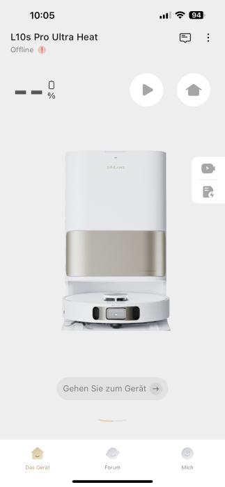 【L10s Pro Ultra Heat】Hallo unser Staubsauger zeigt immer offline an und ich weiß nicht warum seine Arbeiten führt er super aus aber ist halt immer offline Kennt das Problem jemand Lg