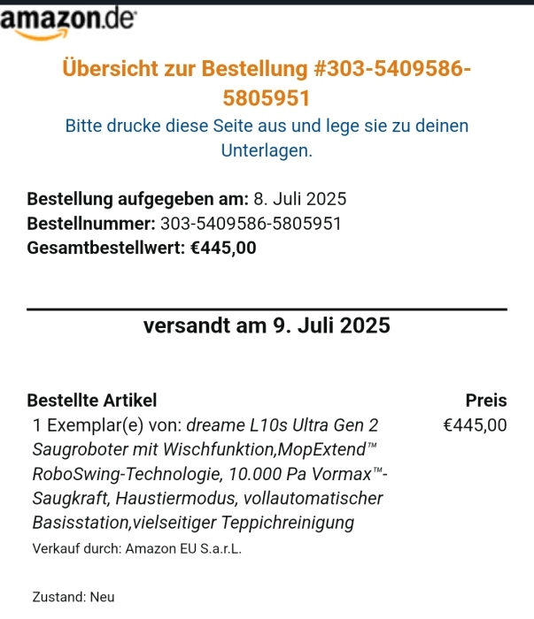 【L10s Pro Ultra Heat】Ich habe lange überlegt, ob ich mir einen Saugroboter zulege – und jetzt weiß ich: Es war die absolut richtige Entscheidung. Der Dreame L10s Pro Ultra Heat ist nicht einfach nur ein technisches Ger...Alles anzeigen